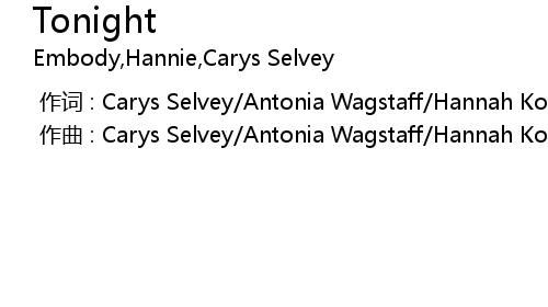 | [00:00.00-1] | 作词 : Carys Selvey/Antonia Wagstaff/Hannah Koppenburg/Embody |