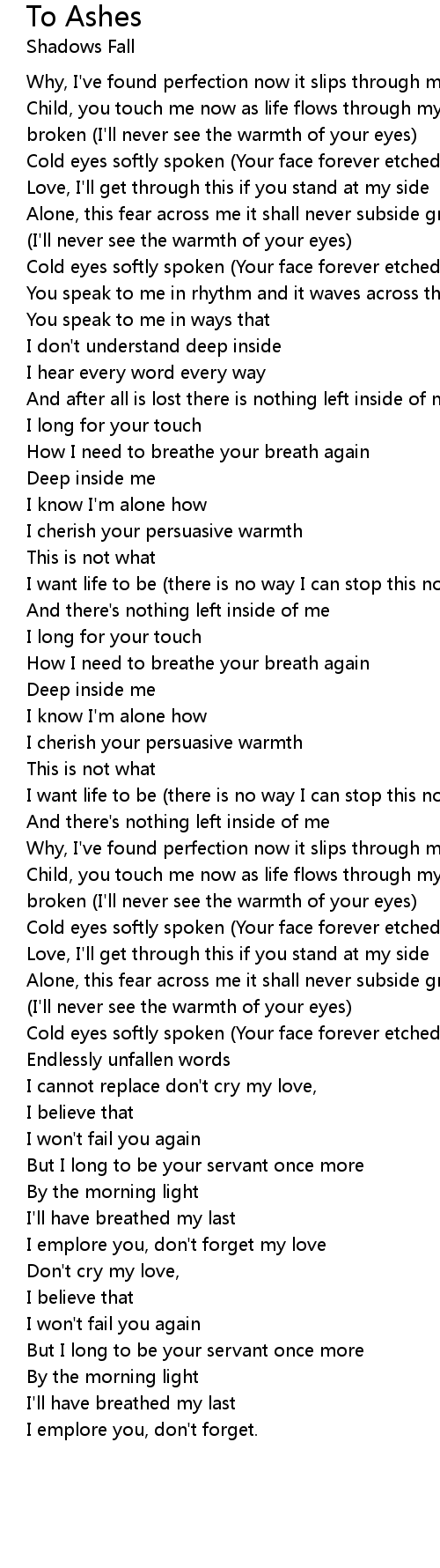 Child, you touch me now as life flows through my hands gray skies have been broken (I'll never see the warmth of your eyes)