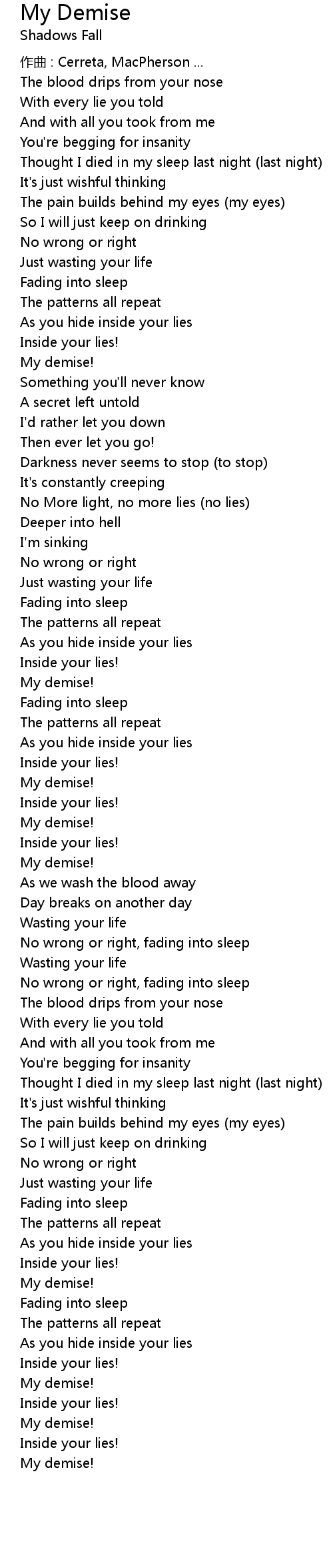 | 歌曲 | My Demise |
