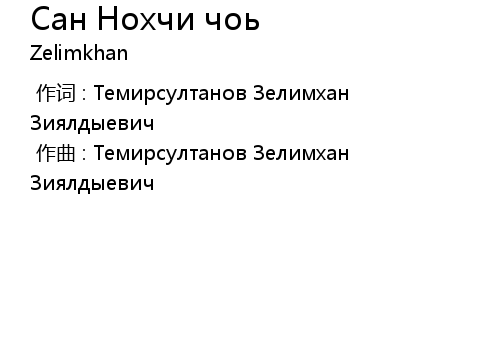 作词 : Темирсултанов Зелимхан Зиялдыевич
