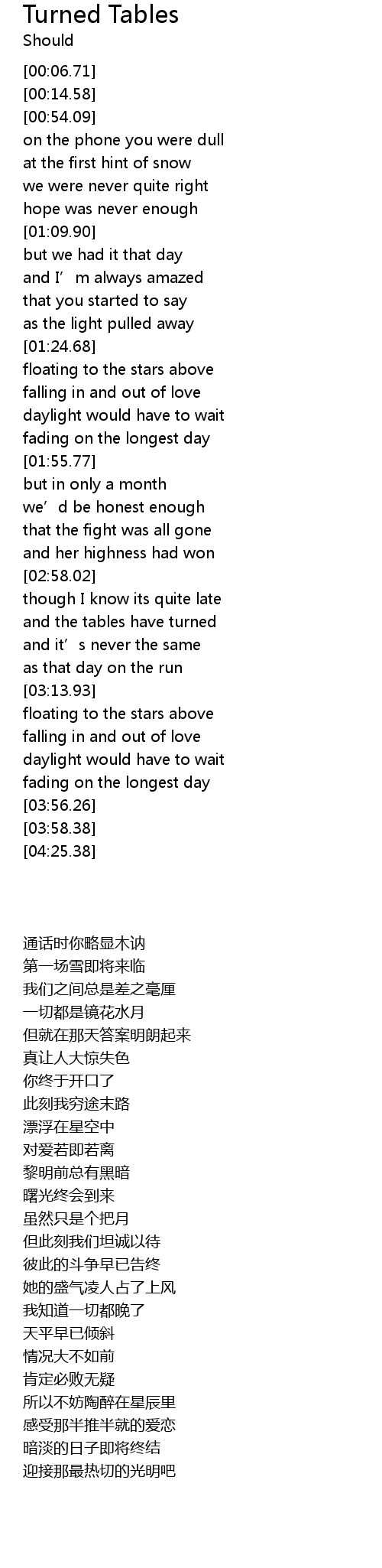 | [03:23.06] | falling in and out of love |