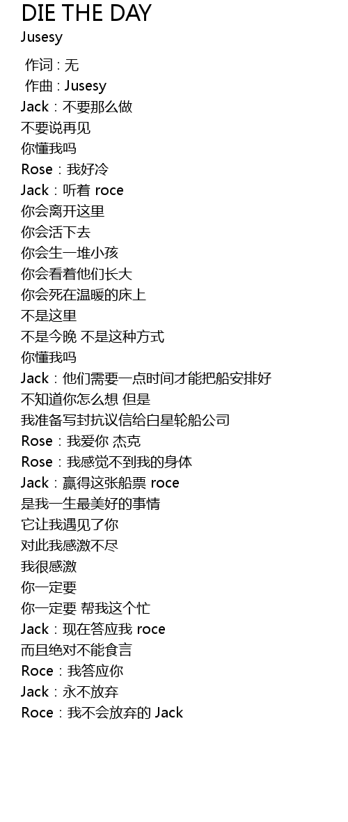 | [02:56.917] | Roce:我不会放弃的 Jack |