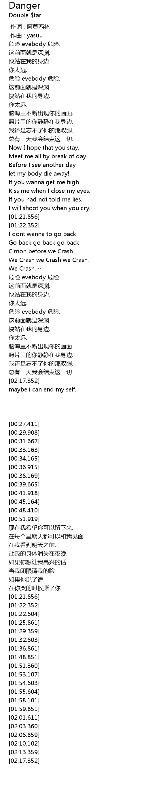 | [00:27.411] | wēi xiǎn evebddy wēi xiǎn. |