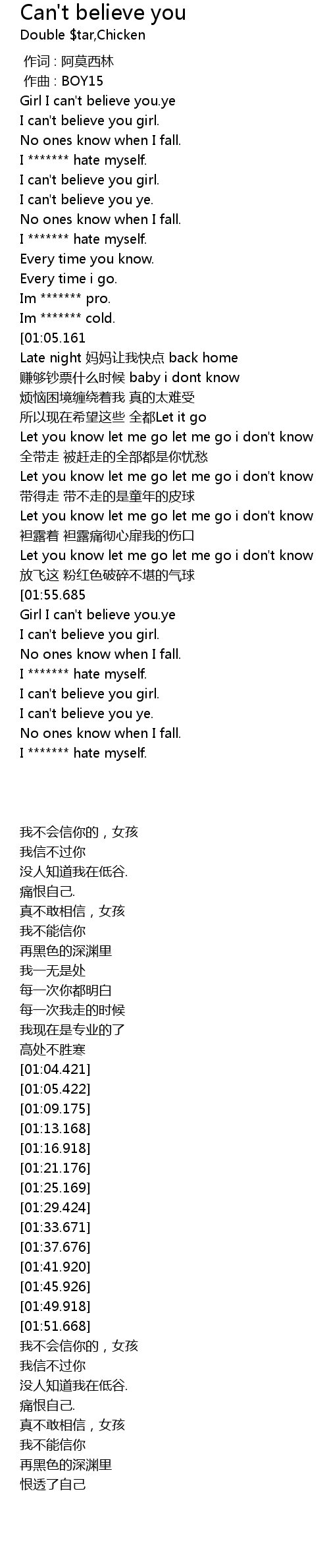 | [01:54.337] | Girl I can't believe you.ye |