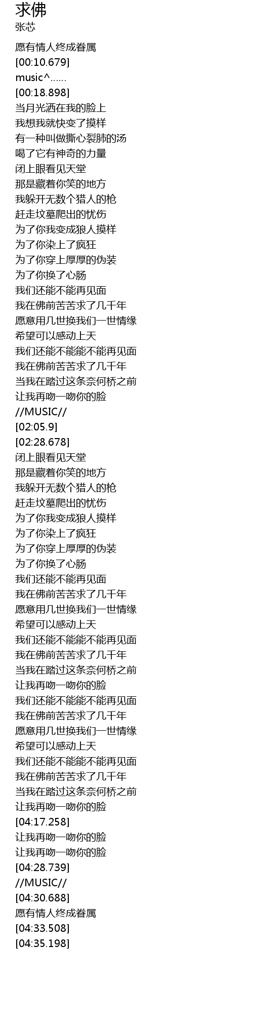 | [04:04.558] | wǒ zài fú qián kǔ kǔ qiú le jǐ qiān nián |