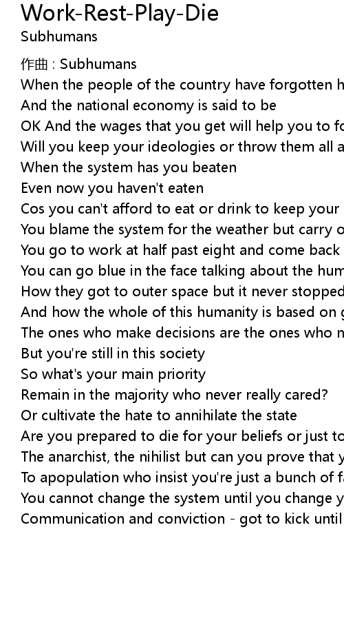 | 歌曲 | Work-Rest-Play-Die |