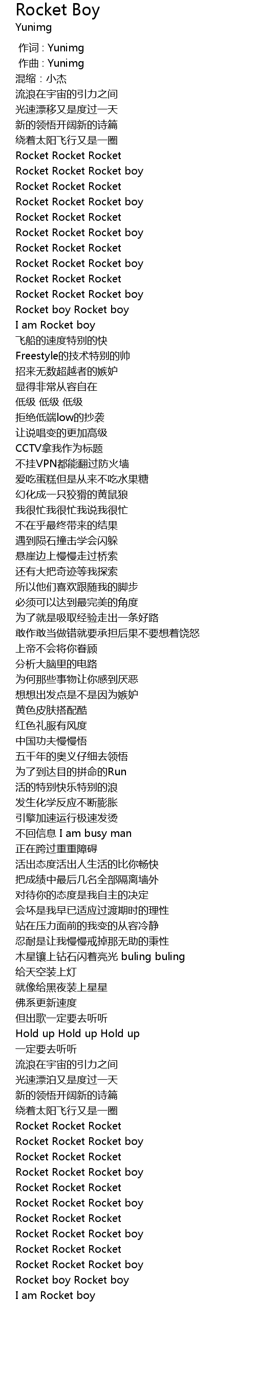 | [02:41.77] | Rocket Rocket Rocket boy |