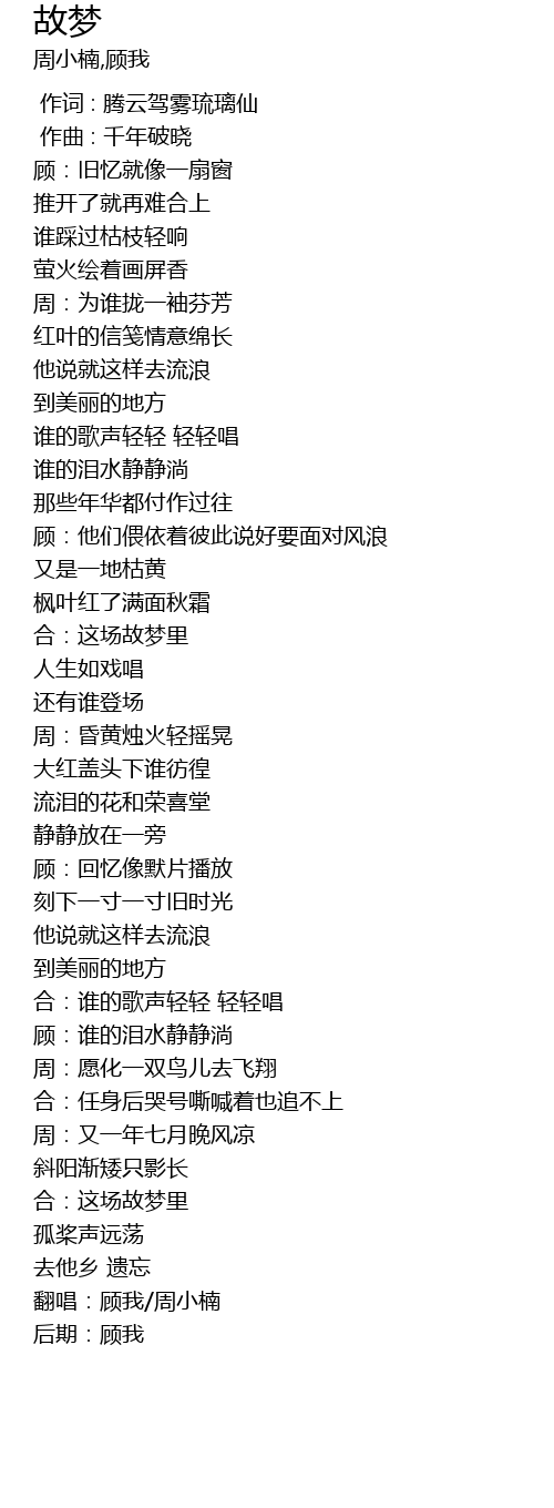 | [04:15.123] | 翻唱:顾我/周小楠 |
