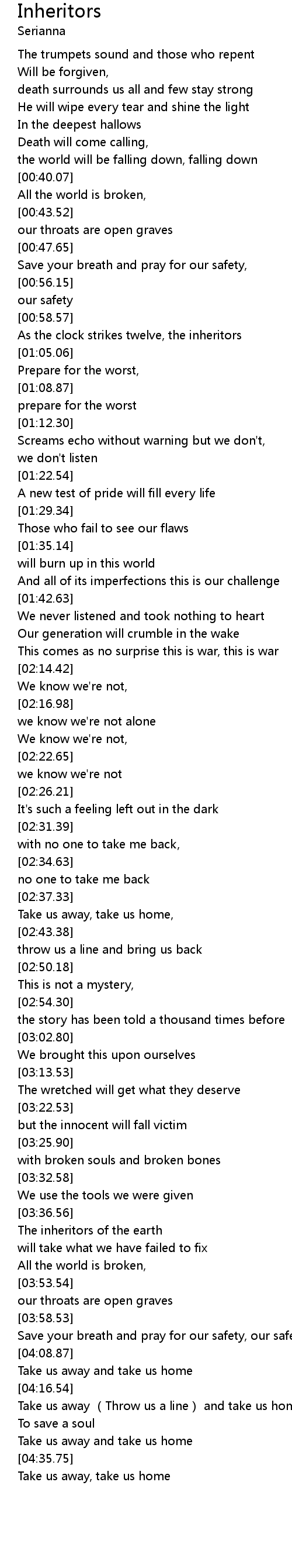 | [03:39.38] | The inheritors of the earth |