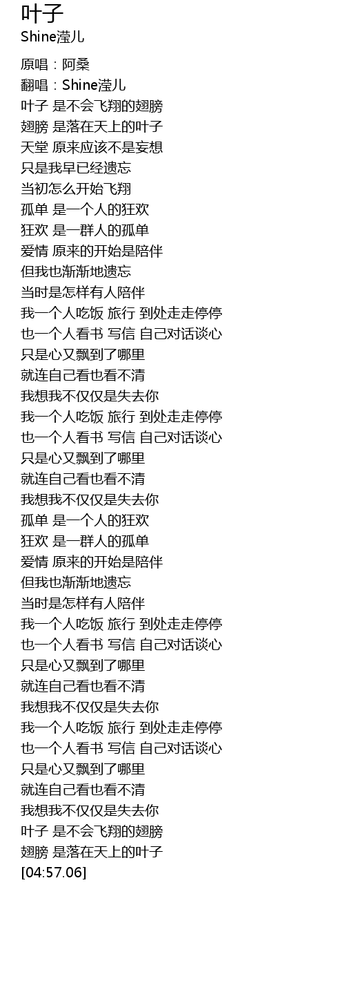| [04:46.83] | 翅膀 是落在天上的叶子 |