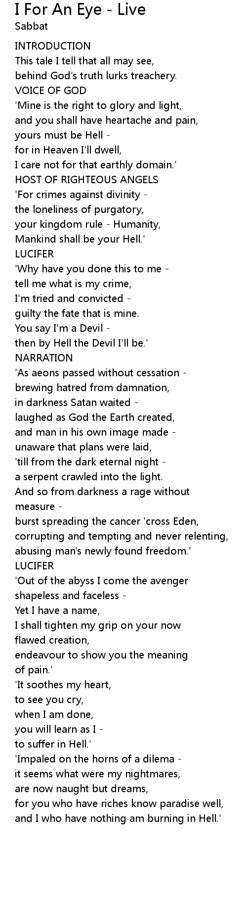 I For An Eye - Live 歌词