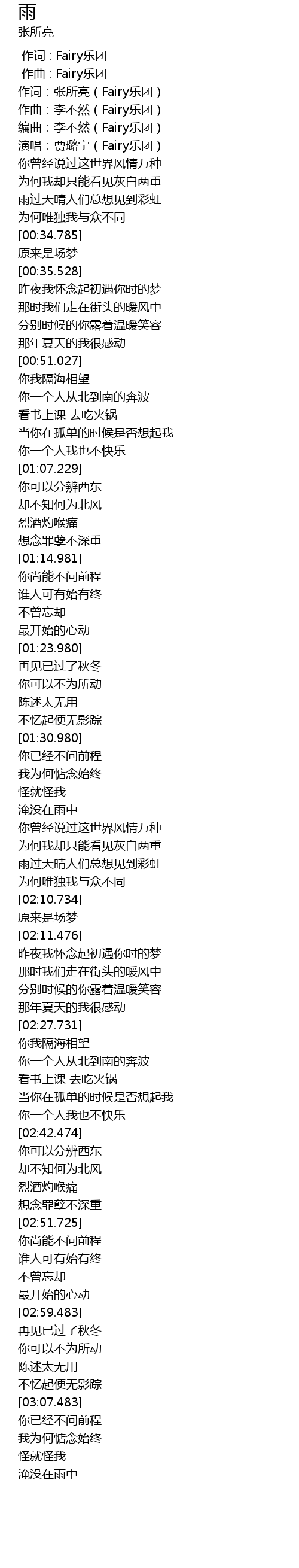 | [00:01.279] | 作词:张所亮(Fairy乐团) |