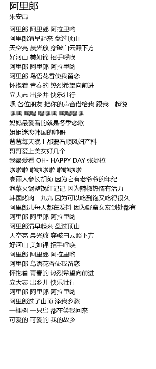 | [00:22.34] | a lǐ láng qīng zǎo qǐ lái pán guò dǐng shān |