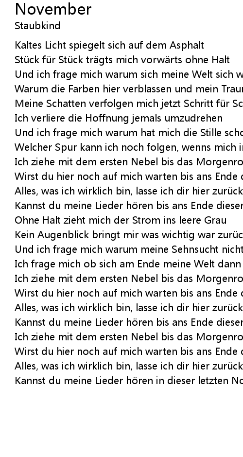 | Kannst du meine Lieder h ren in dieser letzten Novembernacht. |