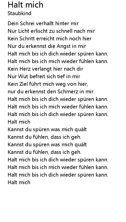 | Halt mich bis ich dich wieder spü ren kann. | |