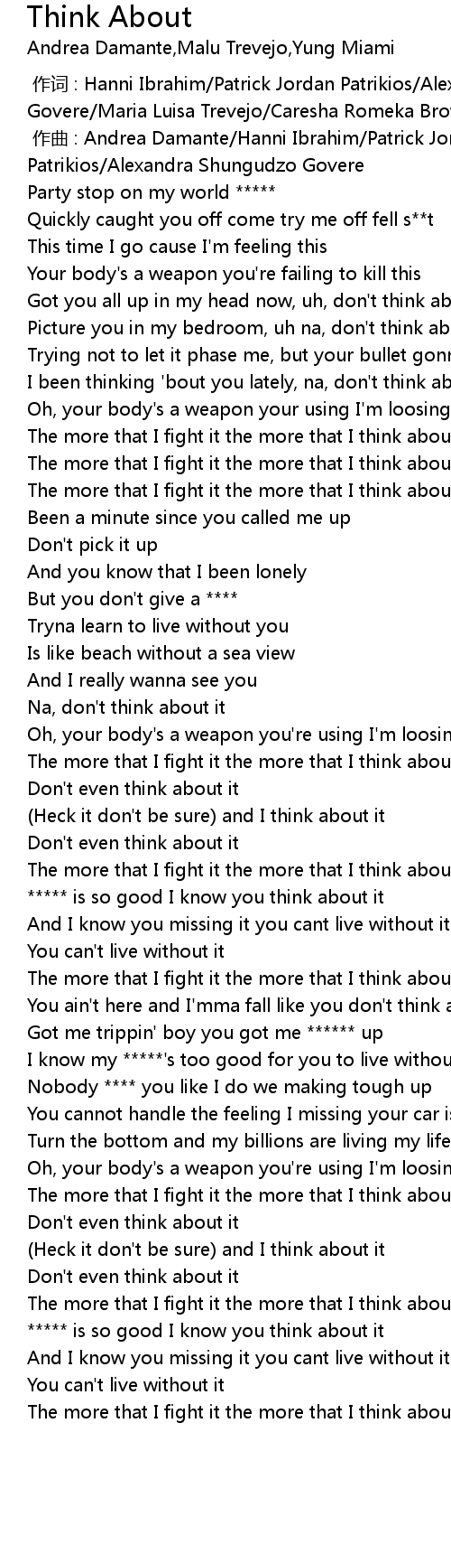 | [00:22.21] | I been thinking 'bout you lately, na, don't think about it |