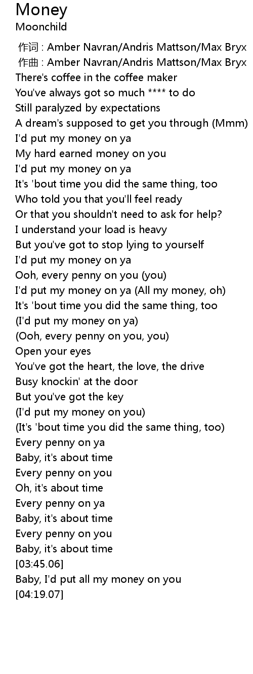 | [01:46.71] | I'd put my money on ya (All my money, oh) |