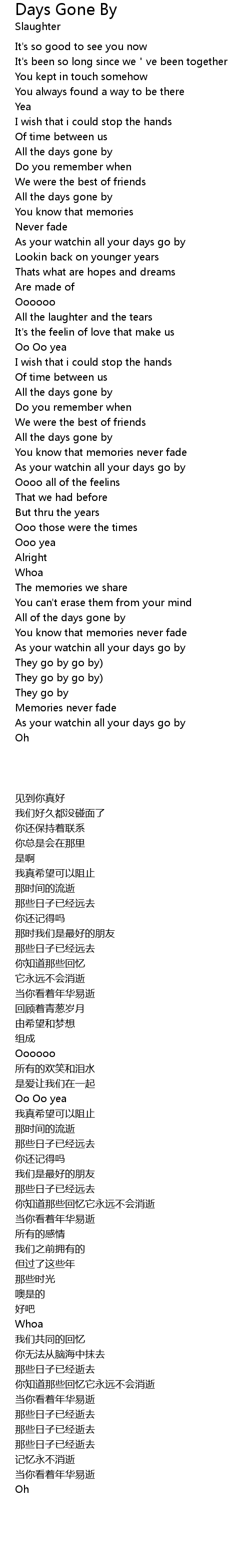 | [00:39.14] | All the days gone by |