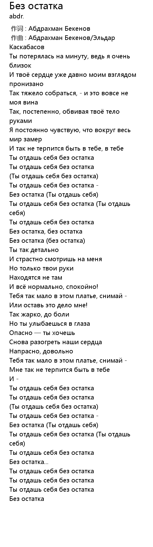 Без остатка 歌词