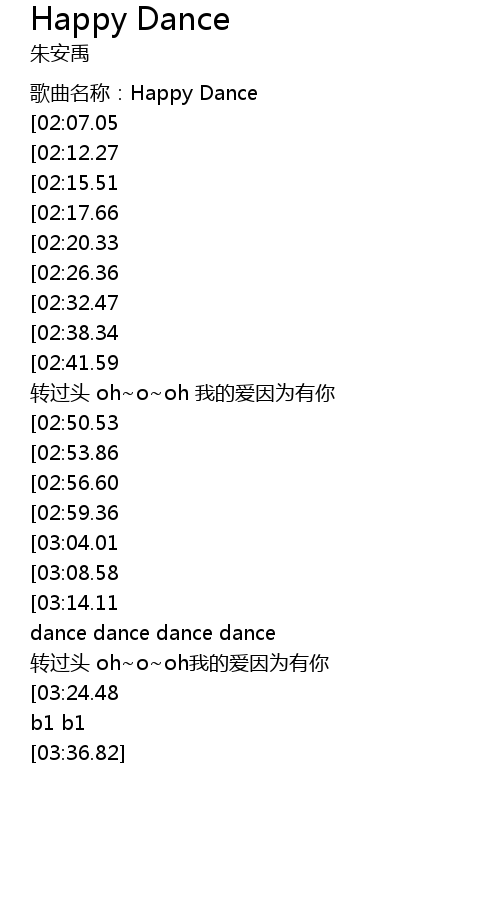 | [00:04.29] | 歌曲名称:Happy Dance |