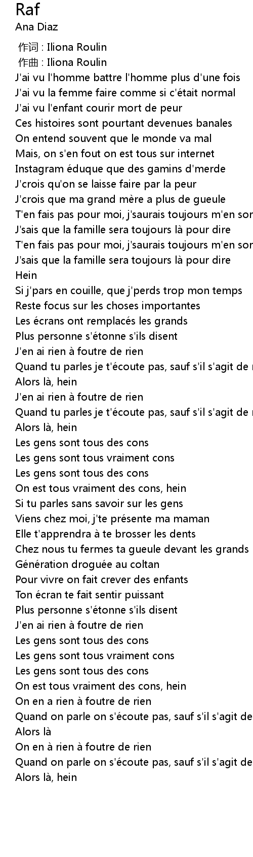 | [00:59.62] | J'en ai rien à foutre de rien |