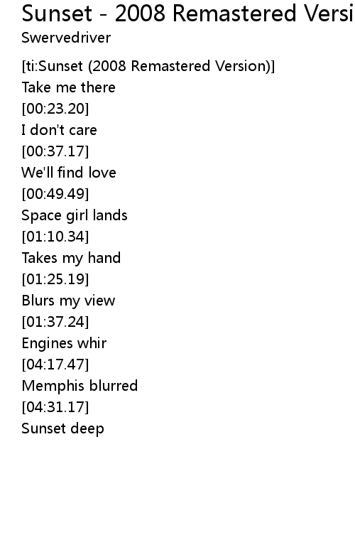 | [ti:Sunset (2008 Remastered Version)] | |