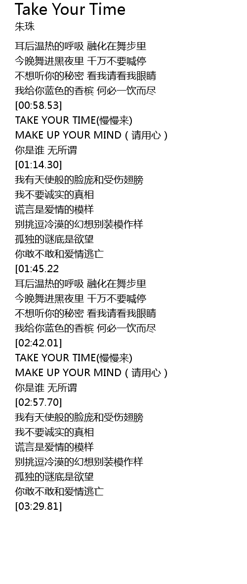 | [00:58.97] | TAKE YOUR TIME(慢慢来) |