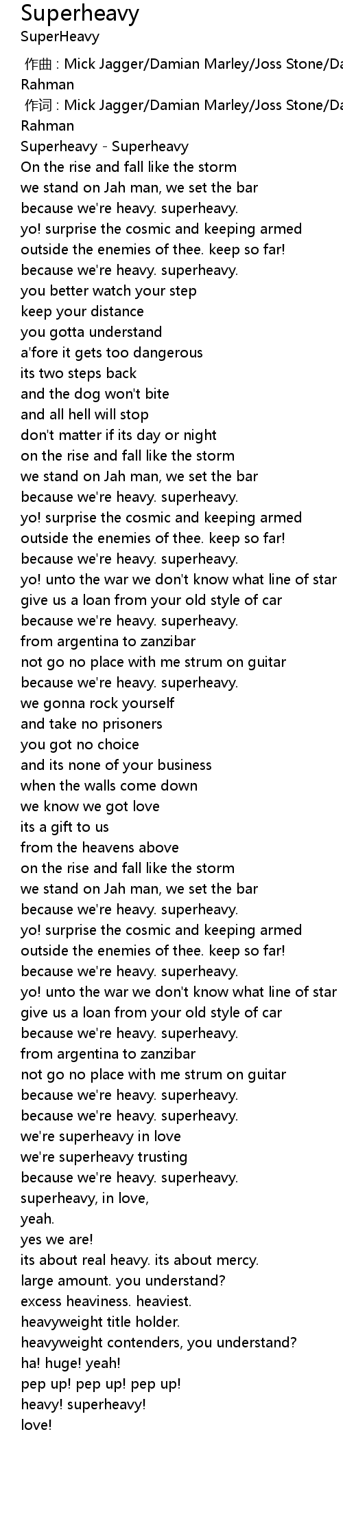 | [00:00.32] | 作词 : Mick Jagger/Damian Marley/Joss Stone/Dave Stewart/A. R. Rahman |
