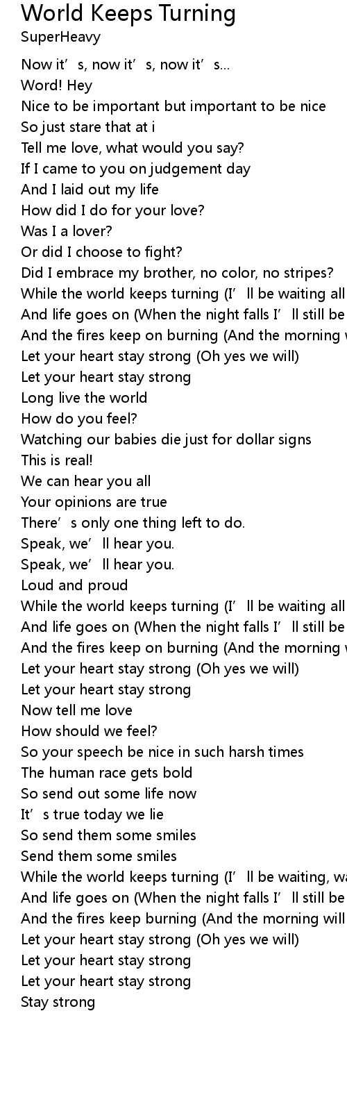 | 歌曲 | World Keeps Turning |
