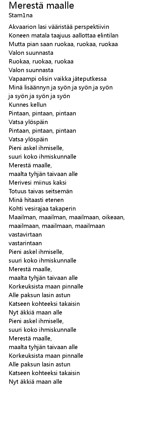 | Maailman, maailman, maailmaan, oikeaan, | |