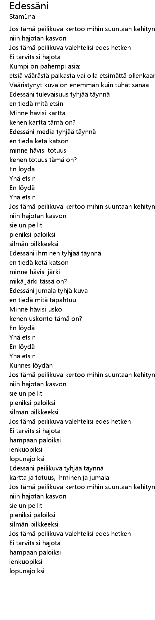| Edessäni tulevaisuus tyhjää täynnä | |