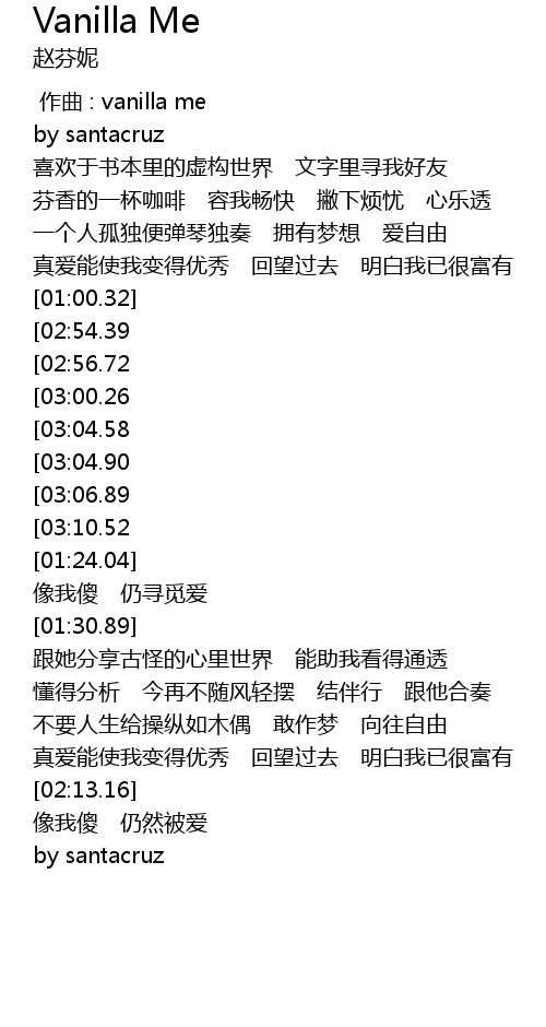 | [03:14.72][02:54.39][02:13.55][01:01.87] | man you zhuang zhi wo jian zhong ye hai pa |