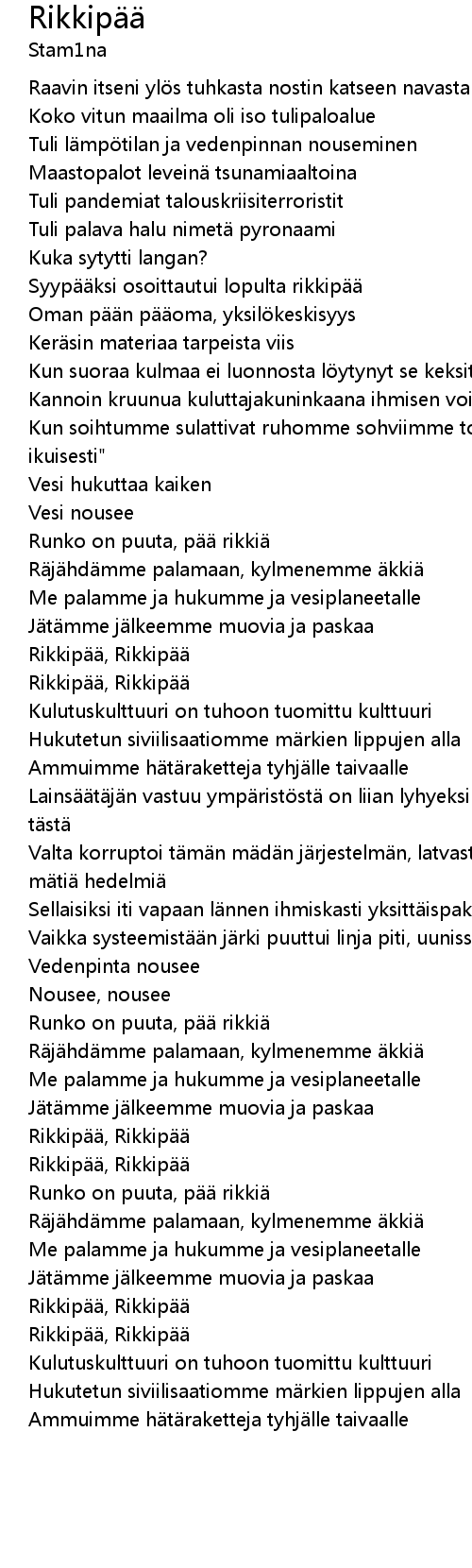 | 歌曲 | Rikkipää |