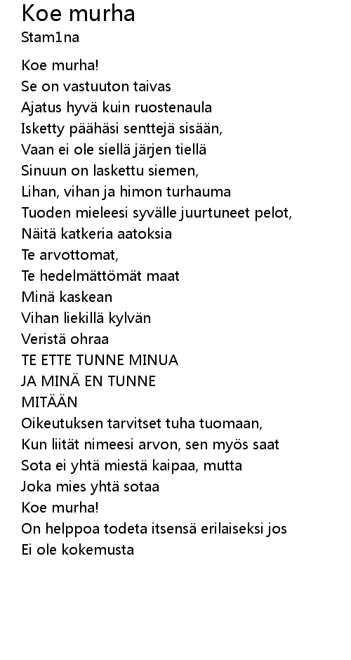 | JA MINÄ EN TUNNE | |
