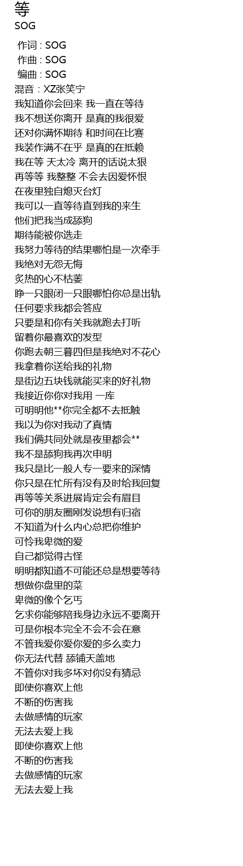| [00:00.000] | 作词 : SOG |