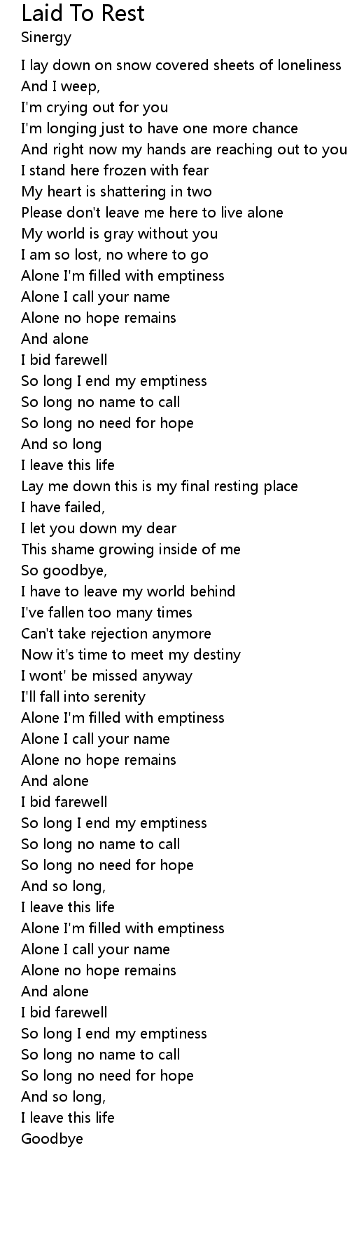 Lay me down this is my final resting place |