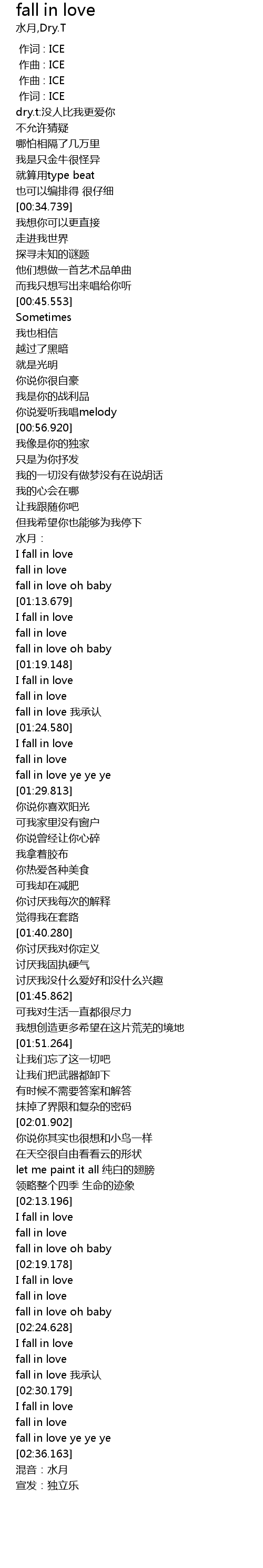 | [00:01.000] | 作词 : ICE |