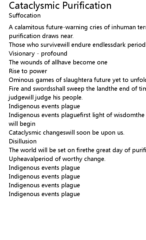 A calamitous future-warning cries of inhuman terroras time elapsesa period of purification draws near. |