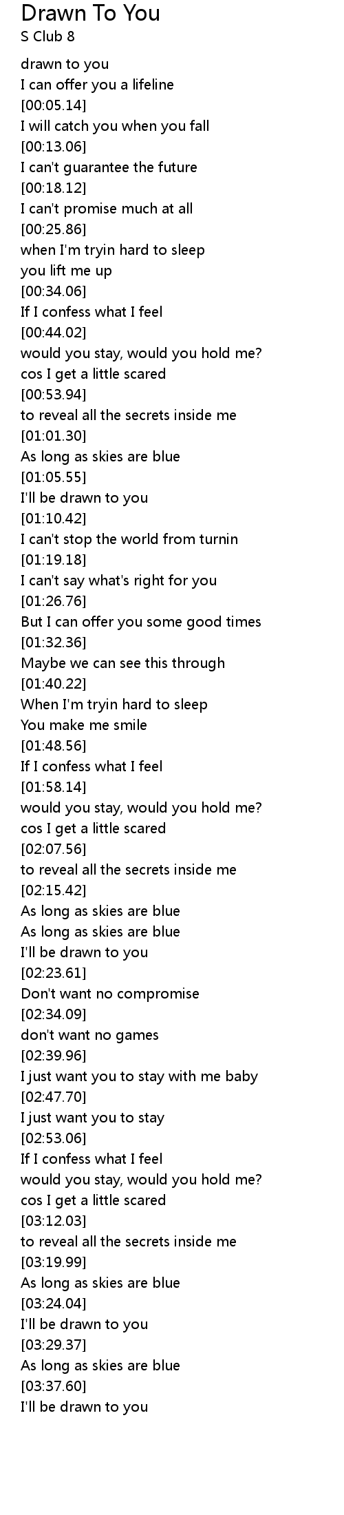 | [03:27.56] | I'll be drawn to you |