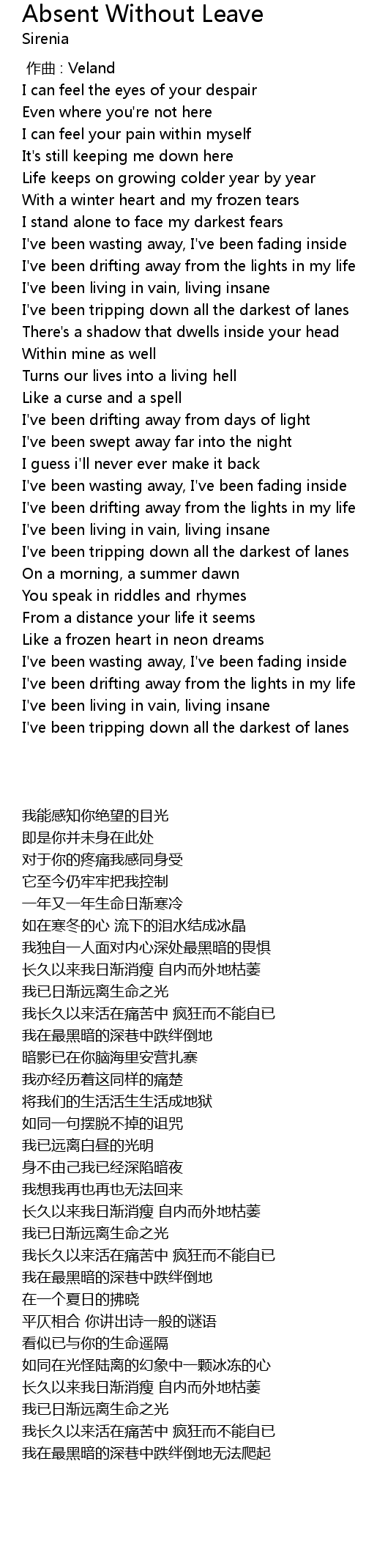 | [04:14.94] | 长久以来我日渐消瘦 自内而外地枯萎 |