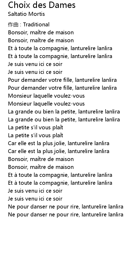 | Ne pour danser ne pour rire, lanturelire lanlira |