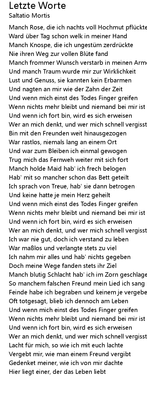 | Manch frommer Wunsch verstarb in meinen Armen | |