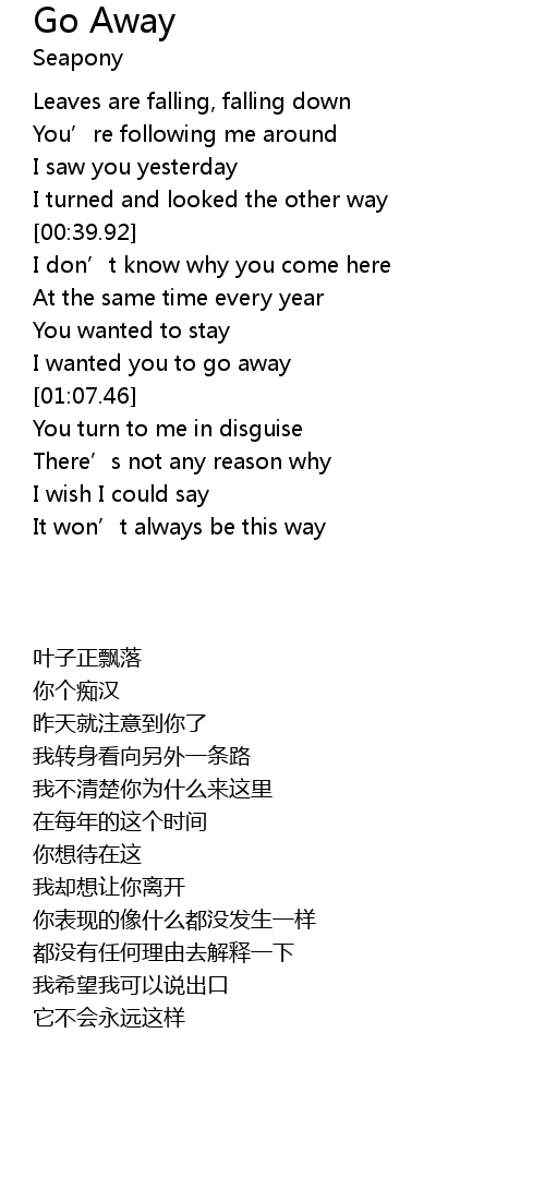 | [00:46.36] | 我不清楚你为什么来这里 |