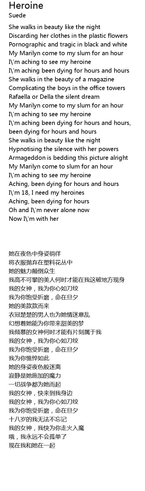 | [00:25.140] | I\'m aching to see my heroine |