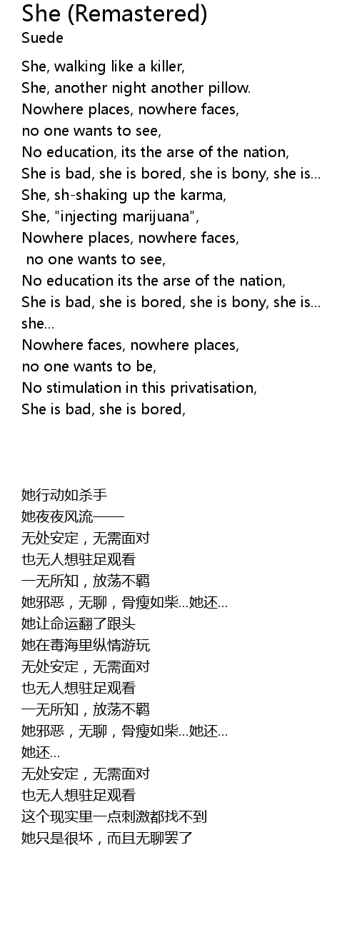 | [01:35.690] | She is bad, she is bored, she is bony, she is... |