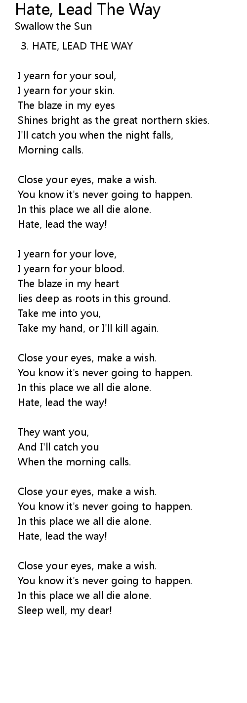 Hate, Lead The Way 歌词