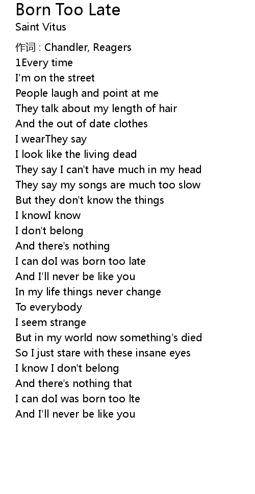| I can doI was born too lte | |
