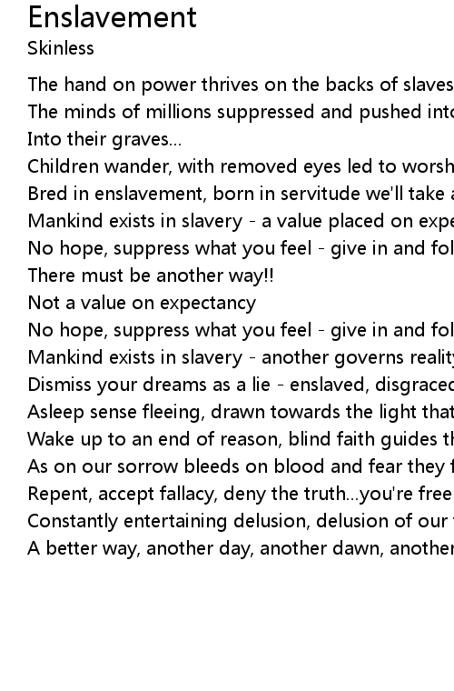 Bred in enslavement, born in servitude we'll take anything we need of you |