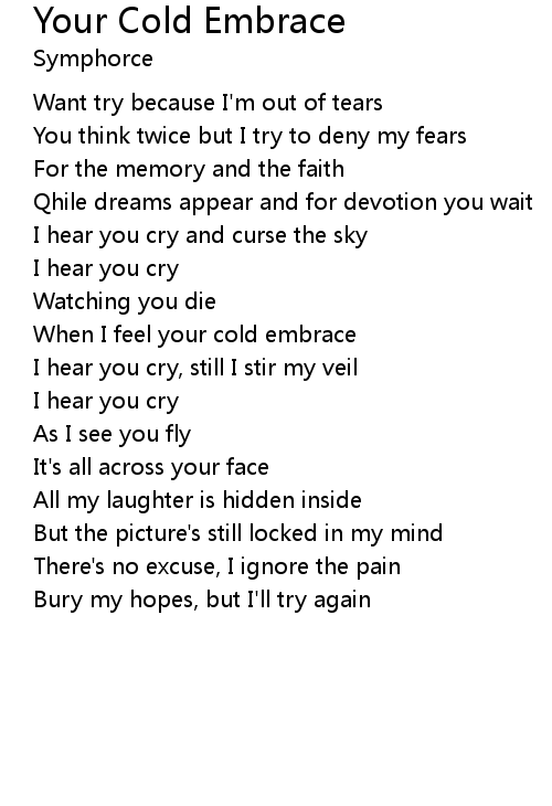| When I feel your cold embrace | |