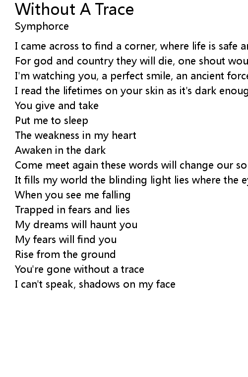 | You're gone without a trace | |